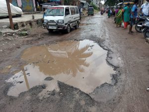 દરેક નગરમાં નગરપાલિકા પ્રમુખનો વોર્ડ સમગ્ર નગરમાં આદર્શ વોર્ડ સાબિત થાય તેવી સુખ સગવડો લોકોને મળતી હોય છે. પરંતુ ભરૂચ નગરમાં ઊંધી રીત રસમો હોય તેમ ભરૂચ નગરપાલિકાનાં પ્રમુખ સુરભિબેન તમાકુવાળાનાં વોર્ડ નં. 7 માં દાંડિયાબજાર, ધોળીકુઇ જેવા વેપારી મથકનાં મુખ્ય રસ્તાઓ પર ઊંડા ખાડા જણાઈ રહ્યા છે. ત્યારે મુખ્ય રસ્તા પર ઊંડા ખાડાઓમાં કપચી નાંખી હંગામી સમારકામ કરવામાં આવી રહ્યું છે.