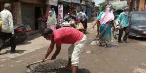 ભરૂચ નગરપાલિકાનાં પ્રમુખનાં વોર્ડમાં મુખ્ય રસ્તા પર ઊંડા ખાડાઓમાં કપચી નાંખી કરાતું હંગામી સમારકામ.