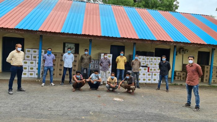 ભરૂચ જિલ્લા પોલીસ વડા રાજેન્દ્રસિંહ ચુડાસમાની સુચના અને માર્ગદર્શન હેઠળ એલ.સી.બી. પી.આઈ જે એન ઝાલા પી.એસ.આઈ પી.સી બરંડા તેમજ એ.એસ ચૌહાણ મળેલ બાતમીનાં આધારે રાષ્ટ્રીય ધોરીમાર્ગ પરનાં માંડવા ટોલનાકા પાસે બે ટ્રકોમાં ભરેલ જંગી વિદેશી દારૂનો જથ્થો ઝડપી પાડયો હતો. આ અંગે ચાર આરોપીઓની અટક કરવામાં આવી હતી. વિદેશી દારૂ બે ટ્રકોમાં જી.આઇ. ની પાઈપોનાં કવરિંગ પાછળ અને કન્ટેનરમાં છુપાયેલો હતો. જ્યારે કેટલોક જથ્થો પ્લાસ્ટિકની બેરલ અને પાણીના બોક્સની કવરીંગ પાછળ ચોર ખાનામાં છુપાવેલ હતો. કુલ વિદેશી દારૂ બોક્ષ 584 ટીન મળી કુલ 7044 કિંમત રૂપિયા 27.36,600 નો જથ્થો ઝડપી પાડયો હતો. આરોપીઓની વધુ પૂછપરછમાં ઘણી બાબતો જાણવા મળે તેમ છે. વિદેશી દારૂના જથ્થા ઉપરાંત બે વાહનો, મોબાઈલ નંગ ચાર અને રોકડા રૂપિયા મળી કુલ 48,77,800/- જ્યારે ઝડપાયેલા આરોપીઓમાં 1) પરવિન્દર સિંગ ગુરદીપ સિંગ મજબીશિખ રહે. હરિયાણા 2) ગુરપ્રીતસિંગ સુરેન્દરસિંગ મજબીશીખ રોહિણી સેકટર દિલ્હી 3) ગુરમીટસિંગ માખનસિંગ મજબીશીખ રહે. હરિયાણા 4) મલકિતસિંગ દર્શનસિંગ મજબીશિખ રહે.બિલોખેડી કરનાળ આ ચારે આરોપીઓની કોવિડ ટેસ્ટ કર્યા બાદ પોલીસ પુછપરછ કરશે.
