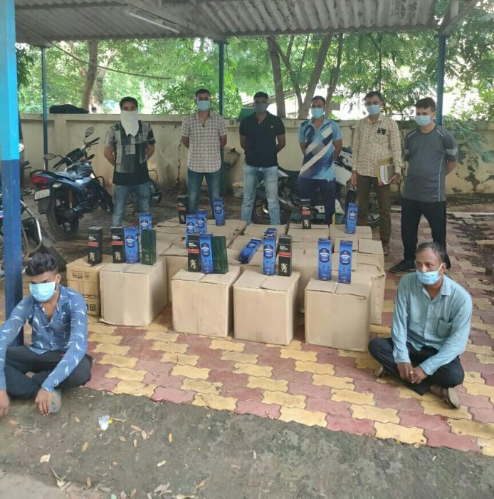 ભરૂચ એલ.સી.બી. પોલીસ દ્વારા જીલ્લા પોલીસ વડા રાજેન્દ્રસિંહ ચુડાસમાની સૂચના મુજબ અને એલ.સી.બી. પી.આઇ. જે.એન.ઝાલાનાં માર્ગદર્શન હેઠળ અવારનવાર વિદેશી દારૂ ઝડપી પાડવામાં આવે છે. તેવી જ રીતે તાજેતરમાં મળેલ બાતમીનાં આધારે એલ.સી.બી. પોલીસે અલગ અલગ ટીમો બનાવી હતી જેમાંથી એક ટીમ એ.એસ.ચૌહાણની રાત્રિનાં પેટ્રોલીંગમાં હતી ત્યારે મળેલ બાતમીનાં આધારે ભરૂચ GIDC ફેઝ-૧ માં પ્લોટ નં.99 માં આવેલ શ્રી લક્ષ્મી મોટર્સ અતુલ શક્તિનાં શો રૂમનાં કંપાઉન્ડમાંથી વિદેશી દારૂનો જથ્થો બોટલ નંગ 566 તેમજ થ્રી વ્હીલર ટેમ્પો મળી કુલ રૂ.3.50 લાખ કરતાં વધુની મત્તા ઝડપી પાડી હતી. આ બનાવ અંગે ઝડપાયેલ આરોપીમાં 1) તરુણ ઓમપ્રકાશ અગ્રવાલ રહે.સર્વેશ્વરનગર ઝાડેશ્વર ભરૂચ 2) સુનિલ જીવંતસિંહ પરમાર રહે. GIDC ભરૂચ જયારે વોન્ટેડ આરોપીમાં 1) સોએબ સલિમ મેમણ રહે.ઈસાપૂરા બંબાખાના ભરૂચ 2) એઝાઝ કાલુભાઇ શેખ રહે.લાલબજાર ભરૂચ. આ અંગે ભરૂચ સી ડિવીઝન વધુ તપાસ કરી રહી છે.
