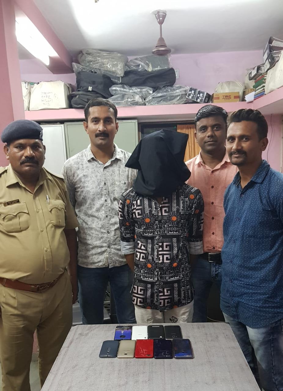 ભરૂચ જિલ્લા પોલીસ તંત્ર દ્વારા વિવિધ ગુનાઓમાં સંડોવાયેલા અને નાસતા ફરતા આરોપીઓને ઝડપી પાડવાની ઝૂંબેશ ચાલી રહી છે ત્યારે ભરૂચ એલ.સી.બી સ્ટાફના માણસો પેટ્રોલિંગમાં હતા ત્યારે એવી બાતમી મળી હતી કે એક ઈસમ કાળા કલરની પ્લાસ્ટિક ની થેલીમાં ચોરીના મોબાઈલ ફોન લઈને વેચવા ફરે છે જે શંકાસ્પદ જણાતા તેને નર્મદા ચોકડી ઓવર બ્રિજ પાસે રોકી તેની તપાસ કરતા થેલીમાં નવ જેટલા મોબાઈલ ફોનો અલગ-અલગ કંપનીના જણાયા હતા.આ વ્યક્તિની ઉડાન પૂર્વક પૂછપરછ કરતા તેણે પોતાની ઓળખ મીનરાજ ઉર્ફે બોબડા શબ્બીર પટેલ ઉમર વર્ષ ૨૬ કે જે મજૂરી કામ કરે છે અને હાલ મદીના પાર્ક ભરૂચ ખાતે રહે છે જયારે મૂળ રહેવાસી સુરતનો હોવાનું જણાવ્યું હતું.આ આરોપી પાસેથી વિવિધ કંપનીના નવ જેટલા મોબાઈલ જેની કુલ કિંમત રૂપિયા ૪૩૦૦૦ મળી આવ્યા હતા.આરોપીનો ગુનાહિત ઇતિહાસ જોતા અગાવ મુંબઈ નાગપાણ ખાતે મોબાઈલ ચોરીના ગુનામાં ઝડપાયો હતો.ત્યારબાદ ત્રણ વર્ષ અગાવ ખૂનની કોશિશ ના ગુનામાં ઝડપાયો હતો.સુરત ખાતે અલગ-અલગ પોલીસ સ્ટેશનમાં ૬ વાહન ચોરીના ગુનામાં તેમજ મોબાઈલ ચોરીના ગુનામાં ઉપરા પોલીસ સ્ટેશન અને કતારગામ પોલીસ સ્ટેશનમાં વોન્ટેડ છે.આરોપીની મોડેસઓપરેંડી જોતા તે પોતાના સાથીદારો સાથે રિક્ષામાં બેસી પેસેન્જરની નજર ચૂકવી ખિસ્સામાંથી મોબાઈલ ફોન કાઢી લઇ રિક્ષામાં બેસ્ટ ફાવતું નથી એમ કહી પેસેન્જરને રસ્તા વચ્ચે ઉતારી દઈ ગુનો કરવાની ટેવ ધરાવે છે.ભરૂચ એલ.સી.બી એ સદર આરોપીની અટક કરી વધુ કાર્યવાહી હાથ ધરી છે.