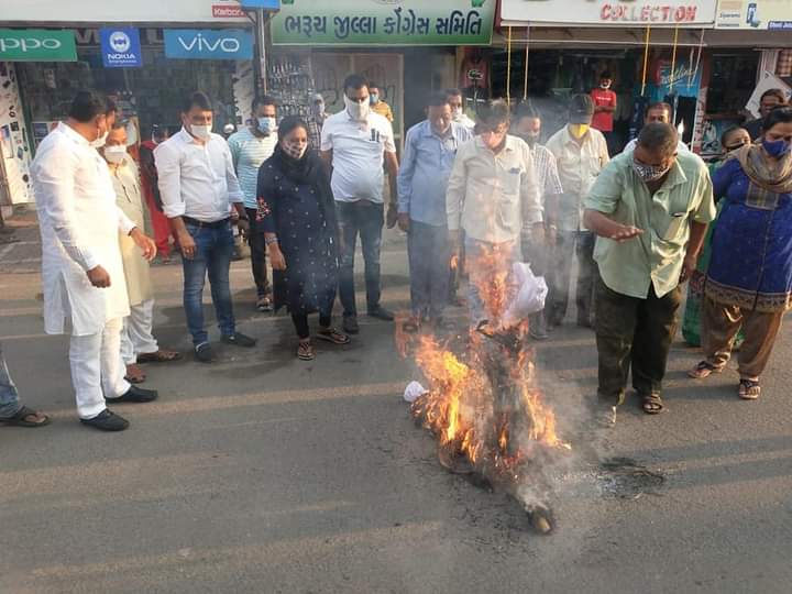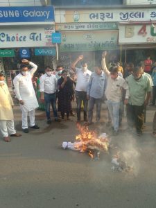 તાજેતરમાં ઉત્તર પ્રદેશમાં હાથરસમાં દલિત દીકરી પર થયેલ અત્યાચાર, ગેંગ રેપ અને હત્યાના બનાવનાં વિરોધમાં ભરૂચ જિલ્લા કોંગ્રેસ દ્વારા ઉગ્ર વિરોધ કરવામાં આવ્યો હતો. તેમજ ઉત્તર પ્રદેશના મુખ્યમંત્રીનાં પૂતળાનું દહન કરવામાં આવ્યું હતું.