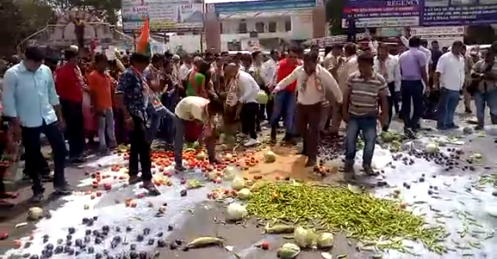 :-આજ રોજ ભરૂચ ના સ્ટેશન વિસ્તાર માં ભરૂચ જીલ્લા કોંગ્રેસ ના કાર્યકરો અને ખેડૂતો દ્વારા ઉગ્ર વિરોધ પ્રદર્શન કરવામાં આવ્યો હતો..જેમાં કોંગી કાર્યકરો અને ખેડૂતોએ શાકભાજી.દૂધ.અનાજ સહીત ના સામગ્રીને રસ્તા ઉપર ફેંકી ઉગ્ર વિરોધ પ્રદર્શન કર્યું હતું.