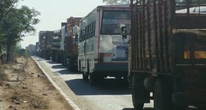 ભરૂચ જીલ્લામાંથી પસાર થતાં રાષ્ટ્રીય ધોરીમાર્ગ પર વધુ એકવાર ટ્રાફીકજામની સમસ્યા સર્જાતા વાહનચાલકો હેરાન પરેશાન થઈ ગયા છે. મળતી માહિતી મુજબ સરદાર બ્રિજ પર રસ્તા રિપેરિંગ કાર્યને લઈને વાહનોની ગતિ ધીમી પડતાં ટ્રાફીકજામની સમસ્યા વધુ વકરી રહી છે. આ અગાઉ પણ અનેકવાર રાષ્ટ્રીય ધોરીમાર્ગ પર ટ્રાફીકજામની સમસ્યા સર્જાવાનાં બનાવો બન્યા હતા પરંતુ તંત્ર દ્વારા કાયમી ધોરણે આ સમસ્યા અંગે કોઈ ઉકેલ લાવવાનો પ્રયાસ કર્યો નથી હાલમાં પણ મુલદ ટોકનાકાથી નર્મદા ચોકડી સુધીનાં માર્ગ પર ટ્રાફીકજામની સમસ્યા સર્જાઈ છે જેના પગલે વડોદરાથી સુરત જતાં અનેક વાહનો ટ્રાફીકજામમાં ફસાયા છે કલાકો સુધી ટ્રાફીકમાં રહેવાના પગલે વાહનચાલકો પણ હેરાન પરેશાન થઈ ગયા છે.
