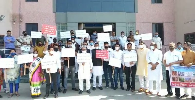 તે અગાઉ કોંગ્રેસના આગેવાનો અને કાર્યકરોએ પ્લેકાર્ડ દ્વારા તાજેતરમાં પસાર થયેલ કૃષિ કાયદાનો વિરોધ કર્યો હતો અને તે સાથે સૂત્રોચ્ચાર પણ કર્યા હતા. ભરૂચ જીલ્લા કોંગ્રેસ સમિતિ દ્વારા પાઠવવામાં આવેલ આવેદનપત્રમાં જણાવાયું છે કે ખેડૂત વિરોધી ત્રણ કૃષિ સંબંધિત કાળા કાયદાઓ પાછા ખેંચો તેમજ બંધારણીય અધિકારથી સરકારની ખેડૂત વિરોધી નીતિ સામે આંદોલન કરતાં ખેડૂતોને રક્ષણ આપવા બાબત રજૂઆત કરવામાં આવી હતી. આવેદનપત્રમાં જણાવ્યા મુજબ દિલ્હીની આજુબાજુની સરહદ ઉપર તેમજ દિલ્હીમાં હાલ જે ખેડૂતો આંદોલનો કરી રહ્યા છે તે વ્યાજબી છે ત્યારે ખેડૂતો પોતાની વ્યાજબી માંગણી માટે આંદોલન કરી રહ્યા છે ત્યારે સરકાર દિલ્હીનાં ખેડૂતો પર દમણ ગુજારી રહી છે ત્યારે ભરૂચ જીલ્લા કોંગ્રેસ સમિતિએ ખેડૂત વિરોધી કૃષિ કાયદા કાયદાકીય રદ કરવાની માંગણી સાથે ખેડૂત લડતને પોતાનું સમર્થન આપ્યું હતું તેમજ જે ખેડૂત પોતાનાં હિતોનાં રક્ષણ માટે લડત આપી રહ્યા છે તેમણે સરકાર તરફથી હેરાનગતિ ન કરવામાં આવે અને રક્ષણ આપવામાં આવે તેવી માંગ કરવામાં આવી હતી. આ પ્રસંગે ભરૂચ જીલ્લા કોંગ્રેસ સમિતિનાં પ્રમુખ પરિમલસિંહ રણા, શહેર પ્રમુખ તેજપ્રીત શોખી, નગરપાલિકા વિરોધપક્ષનાં સમસાદ અલી સૈયદ વગેરે ઉપસ્થિત રહ્યા હતા.