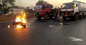 ભારત બંધનાં એલાનને પગલે ભરૂચ પંથકમાં ઠેર-ઠેર માર્ગો પર ટાયરો સળગાવી વાહન વ્યવહાર રોકવાનો પ્રયાસ કરાયો..