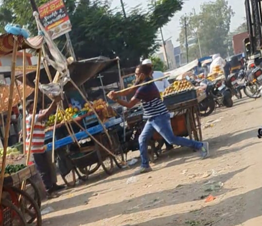 ભરૂચના બાયપાસ રોડ પર બી ડિવિઝન પોલિસ મથકના પોલિસકર્મી દ્વારા ફ્રૂટની લારી પર દંડા મારી અત્યાચાર કરતા ફોટા અને વિડીયો વાયરલ થયો છે.