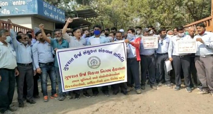 ગુજરાતમાં ઉર્જા વિભાગની સાત કંપની (ડીજીવીસીએલ/પીજીવીસીએલ/એમજીવીસીએલ/યુજીવીસીએલ/જેટકો-સબસ્ટેશન/જીસેક-પાવર સ્ટેશન/તથા જીયુવીએનેલ) ઓફિસના તમામ 55 હજાર કર્મચારીઓ સાતમા પગાર પંચના મંજુર થયેલા આનુસંગિક લાભો મેળવવા આખા ગુજરાતમાં તમામ વીજ કચેરીઓ બહાર બપોરેના રિશેસના સમયમાં ઉર્જા વિભાગ પાસે પોતાની માંગણીઓ સંતોષવા સૂત્રોચ્ચાર કરી આંદોલનની શરૂઆત કરી હતી.