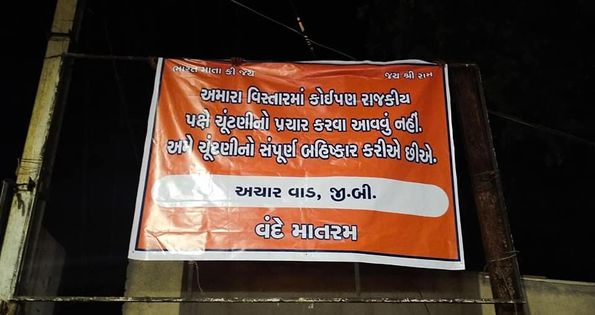 હાલ રાજ્યમાં સ્થાનિક સ્વરાજ ની ચૂંટણીની મોસમ જામી છે,તેવા માં પ્રજા પણ હવે પોતાના વિસ્તાર ના પ્રશ્ર્નોના નિરાકરણ માટે હવે રાજકારણીઓ સામે મેદાને પડી છે,જુના ભરૂચ વિસ્તારમાં આવેલ હાથીખાના બજર નજીક ના વિસ્તારોમાં ચૂંટણી બહિષ્કાર ના બોર્ડ લગાવવામાં આવ્યા છે.