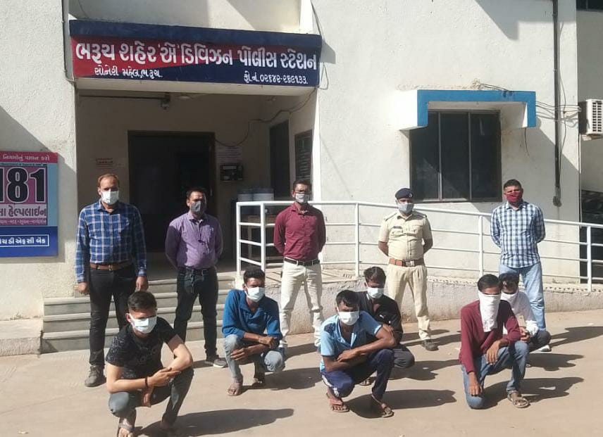 ભરૂચ જીલ્લામાં અવારનવાર પ્રોહીબિટેડ ગુનાઓને શોધી કાઢવા પોલીસ દ્વારા કામગીરી કરવામાં આવે છે. ભરૂચ એ ડિવીઝન પોલીસ નાઈટ પેટ્રોલીંગમાં હોય તે દરમિયાન પત્તા-પાનાં વડે જુગાર રમતા 6 શખ્સોને પોલીસે ઝડપી પાડયા છે.