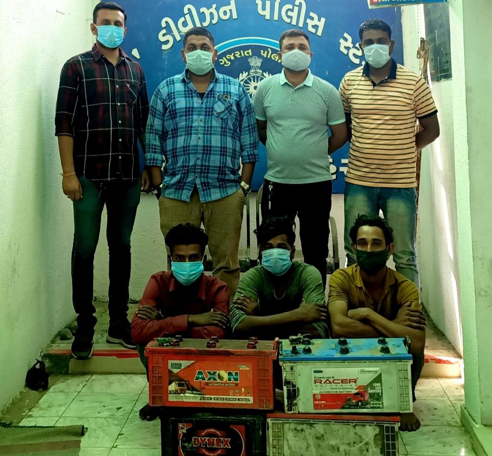 આ બનાવ અંગેની પ્રાપ્ત માહિતી અનુસાર ભરૂચ સી ડીવીઝન પોલીસ મથકનો સ્ટાફ પેટ્રોલીંગમાં હતો દરમિયાન મળેલ બાતમીના આધારે ઝાડેશ્વર ચોકડી વિસ્તારમાંથી ચોરીમાં ગયેલ બેટરીઓ સાથે ત્રણ ઇસમોની પોલીસ અટકાયત કરી હતી.
