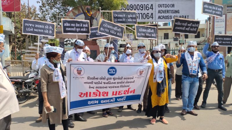 આમ આદમી પાર્ટીનાં કાર્યકરોએ જણાવ્યું હતું કે દિલ્હીનાં લોકો દ્વારા ચૂંટાયેલી સરકારને નબળી પાડીને જનહિતનાં કાર્યોને રોકવાની કેન્દ્ર સરકારનાં ષડયંત્રનાં વિરોધમાં એલજી સત્તા વધારવાના બિલને પરત ખેંચવાની માંગ સાથે વિરોધ પ્રદર્શન કરવામાં આવ્યું હતું.