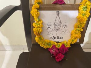 ત્યારે નેત્રંગ ખાતે પણ કાર્યરત નરેન્દ્ર મોદી વિચાર મંચ (આઈ.ટી.સેલ) ના “વિશ્વાસ કાર્યાલય” સાથે નેત્રંગ તાલુકા ગુજરાત રાજ્ય યુવા બોર્ડ તેમજ તાલુકા પંચાયત ખાતે શહિદ ભગતસિંહ, સુખદેવ અને રાજગુરુના ફોટા સહિત તમામ વીર શહીદોની પ્રતિમાને ફુલહાર ચઢાવી શ્રદ્ધા સુમન અર્પણ હતા.