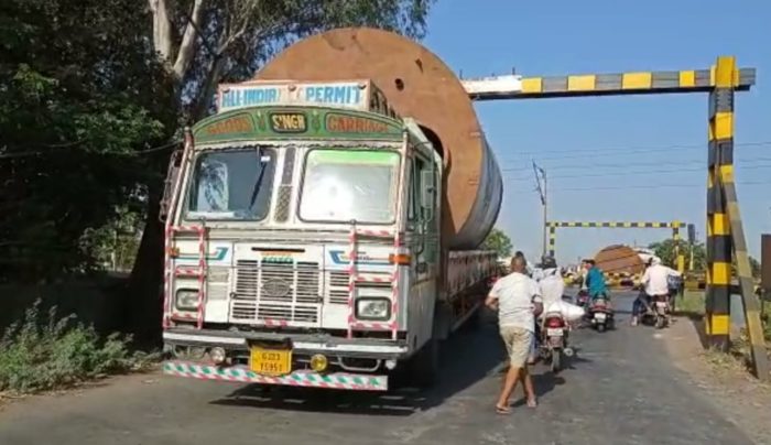 આજરોજ સવારે 8 વાગ્યાનાં સુમારે એક ટ્રક કેરિયર GJ 23 Y 5951 રાજકોટથી સુરત તરફ જતું હતું તે દરમ્યાન ડાયાદરા થઈ નબીપુર ને. હા. 48 પર જવા માટે આવતું હતું તે દરમ્યાન નબીપુર પ.રે. ફાટક પસાર કરતી વખતે કેરિયરમાં ભરેલ સામાન રેલવે ફાટકની ઉંચાઈ કરતા વધુ હોવાથી સામાન ફાટક ઉપર લાગેલ લોખંડની એંગલ જોડે ધડાકાભેર અથડાતાં કેટલોક સામાન તૂટીને નીચે પડયો અને કન્ટેનર ફસાઈ જતા રેલવે ફાટકને પણ નુકસાન થવા પામ્યું છે જેને કારણે ભારે વાહનચાલકો પરેશાન થઈ જવા પામ્યા છે.