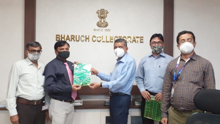 ભરૂચ જિલ્લાના ક્રેડિટ પ્લાન ૨૦૨૧-૨૨ નું વિમોચન જિલ્લા કલેક્ટર એમ.ડી મોડિયા બેંક ઓફ બરોડાના ક્ષેત્રીય પ્રબંધક આસિસ્ટન્ટ જનરલ મેનેજર તરુણ રાવલ, ક્ષેત્રીય પ્રબંધક આસિસ્ટન્ટ જનરલ મેનેજર સ્ટેટ બેંક ઓફ ઇન્ડિયા પ્રવિણ ભાઈ, લીડ ડિસ્ટ્રિક્ટ મેનેજર બેંક ઓફ બરોડાનાં જીગ્નેશ પરમાર તથા બરોડા ગ્રામીણ બેંકનાં ડિસ્ટ્રિક્ટ કો.ઓર્ડીનેટર એન.બી વોરાનાં હસ્તે કરવામાં આવ્યું હતું.