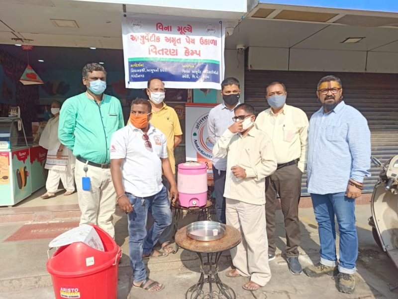ભરૂચ : કોરોનાની વિકટ પરિસ્થિતિમાં જિલ્લા આયુર્વેદિક શાખા અને અંતરરાષ્ટ્રીય હિંદૂ પરિષદ રાષ્ટ્રીય બજરંગ દળનાં સંયુકત ઉપક્રમે આર્યુર્વેદિક ઉકાળાનું વિતરણ કરવામાં આવ્યું.