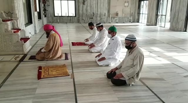 આજરોજ ભરૂચમાં વસતા મુસ્લિમ સમાજ દ્વારા કોરોના ગાઇડલાઇનનું પાલન કરીને ઇદની ઉજવણી કરવામાં આવી હતી. ભરૂચ સ્ટેશન પાસે આવેલ મસ્જિદના 4 મુખ્ય ટ્રસ્ટીઓએ કોરોનાની ગાઇડલાઇનને સમજી અને સ્વીકારીને સોશ્યલ ડિસ્ટન્સનું પાલન કરીને નમાજ અદા કરી હતી. આ વર્ષે માત્ર બે થી ત્રણ લોકો દ્વારા જ મસ્જિદમાં નમાજ અદા કરીને ઇદની ઉજવણી કરવામાં આવી હતી. તેમને જણાવ્યું હતું કે ડી.એસ.પી સાહેબના આદેશના અનુસંધાનને માન રાખીને સોશ્યલ ડિસ્ટન્સ હાલ રાખવું ખુબ જરૂરી છે જેથી હિંદુ તથા મુસ્લિમ દરેક સમુદાયના લોકોને ગાઇડલાઇનનું પાલન કરવા વિનંતી કરી હતી. આજરોજ દરેક મુસ્લિમ લોકોએ નમાજ અદા કરીને અલ્લાહને પ્રાર્થના કરવામાં આવી કે દેશ અને દુનિયામાંથી કોરોના જેવો જીવલેણ રોગ જલ્દીથી દૂર થઈ જાય.