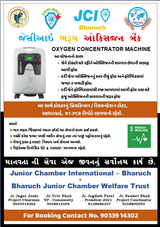 ભરૂચ જેસીઆઇ દ્વારા ઓક્સિજન બેંક શરૂ કરવામાં આવી.