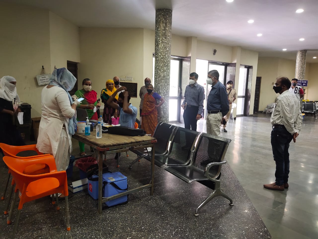 ભરૂચ જિલ્લામા કોરોના સામેના અમોધ શસ્ત્ર એવા રસીકરણ બાબતે ચાલી રહેલી વિશેષ ઝુંબેશને વેગ આપવા માટે આજરોજ જિલ્લા કલેક્ટર ડૉ. એમ.ડી.મોડિયાએ ભરૂચના પંડિત ઓમકારનાથ હોલ ખાતેના ‘રસીકરણ કેમ્પ’ ની મુલાકાત લીધી હતી. રસીકરણ કેમ્પની મુલાકાત લઈ જિલ્લા કલેક્ટરએ ૪૫ થી વધુ ઉમરના લાભાર્થીઓને રસીકરણ બાબતે પ્રોત્સાહિત કર્યા હતા અને પ્રજાજનોને કોઈ પણ જાતના ડર વગર વેક્સીન લેવાની અને રસીકરણ ઝૂંબેશનો મહત્તમ લાભ લેવાની અપીલ કરી હતી. નગરપાલિકાના ચીફ ઓફિસર સંજયભાઈ સોની, લાભાર્થીઓ ઉપસ્થિત રહ્યા હતા.