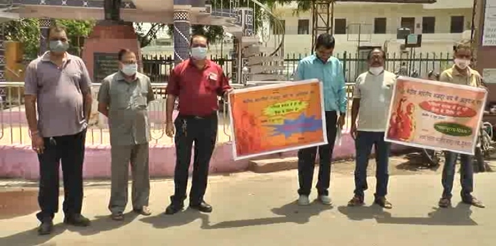 ભરૂચ જિલ્લા ભારતીય મજદૂર સંઘ દ્વારા બંગાળમાં ચૂંટણી પછી થયેલ હિંસાના સમર્થનમાં રેલવે સ્ટેશન પાસે વિરોધ પ્રદર્શન.