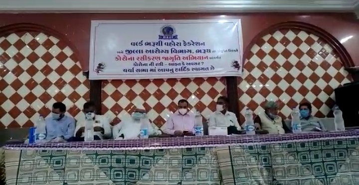 આ ઉપરાંત કોરોના મહામારી નાથવા માટે સરકાર દ્વારા ચલાવવામાં આવતા કોરોના રસીકરણ અભિયાનનો મોટા પાયે લાભ લેવા માટે ધાર્મિક અને વૈજ્ઞાનિક દ્રષ્ટિકોણથી લઘુમતી સમાજના લોકોને ઘરદીઠ જાગૃત કરવા આહવાન કરાયું હતું. ડૉ. શાહિદ મિર્ઝાએ કોરોના મહામારીમાં પ્રજામા જાગૃતતાનો અભાવ ઘાતક હોવાનું જણાવતા ધાર્મિક દ્રષ્ટિએ પયગમ્બર સાહેબના સંદેશ સાથે કોરોના રસીના લાભ વર્ણવવા સાથે હર્ડ ઇમ્યુનિટીની વ્યાખ્યા સમજાવી હતી. કોરોના મહામારીના ત્રીજા ચરણમાં બાળકો માટે અલગ વોર્ડની વ્યવસ્થા કરવા તેમજ મ્યુકોમાઇકોસીસ અંગે માહિતી આપી હતી. લોકોને પોતાની જીવન જીવવાની પ્રણાલી બદલવા આહવાન કર્યું હતું. જીલ્લા કલેકટર ડૉ. એમ ડી મોડીયાએ આ પ્રસંગે ટેલીફોનીક સંદેશ પાઠવતા લોકોને મહત્તમ કોરોના વૅક્સિનનો લાભ લેવા અનુરોધ કર્યો હતો. જીલ્લા આરોગ્ય અધિકારી છે એસ ધુલેરાએ સોશ્યલ મિડીયામાં વ્યાપક વિવિધ ગેરમાન્યતાઓનો છેદ ઉડાડતા રસીકરણના ફાયદા વર્ણવ્યા હતા તેમજ વૉટ્સઅપ યુનિવર્સિટીની ભ્રામક વાતોમાં નહીં આવવા સાથે ભરૂચ જિલ્લામાં ૪૨૬૧૭૯ લોકોને પ્રથમ ડોઝ તેમજ ૧૧૪૦૪૦ બીજો ડોઝ આપવામાં આવ્યો હોવાની માહિતી આપી હતી.