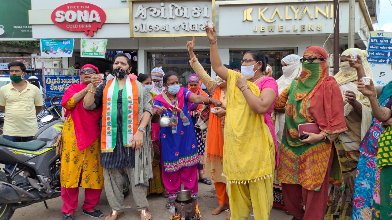 પાંચબત્તી સર્કલ પર ચક્કાજામ કરીને મહિલાઓએ ચૂલા પર ઉકાળો બનાવીને વિરોધ પ્રદર્શન જતાવ્યો હતો.