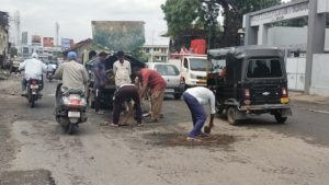 અગાઉ જણાવેલ અહેવાલ મુજબ ટ્રાફિક જામ અને વાહનચાલકોને હાલાકી થઈ રહી હતી તે અંગે પાલિકા તંત્રને જાણ થતાં પાલિકા તંત્રે તાત્કાલીક ધોરણે કામગીરી હાથ ધરી હતી. વરસાદી માહોલ વચ્ચે રસ્તા પર પડેલા મસમોટા ખાડાને પૂર્વની કામગીરી હાથ ધરવામાં આવી હતી. અગાઉ જણાવેલ તે મુજબ નગરપાલિકા કર્મીઓ એમ.જી. રોડ પર આવેલ સેંટ ઝેવીયર્સ સ્કૂલ પાસે ખાડા પૂરવાની કામગીરી કરી રહ્યા હતા.