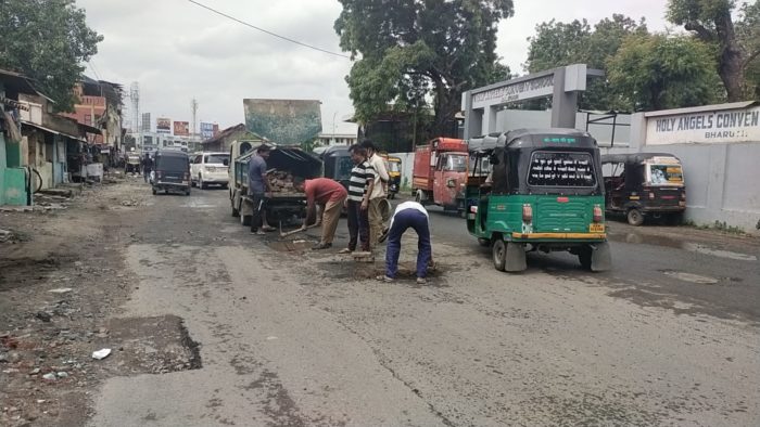 ભરૂચ પંથકના સ્ટેશનથી મહંમદપૂરા રોડ પર આવેલ અનેક વિસ્તાર જેમ કે પાંચબત્તી, ફાટાતળાવ, એમ.જી.રોડ સહિત અનેક વિસ્તારના મુખ્ય માર્ગો ઉબડખાબડ થઈ ગયા છે. રસ્તાઓ પર એક જ વરસાદના ધોવાણને કારણે મસમોટા ખાડા પડી ગયા હતા જેને કારણે કામગીરી હાથ ધરાઇ છે.