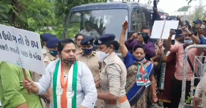 ભરૂચ જિલ્લા કોંગ્રેસ સમિતિના મહિલાઓ અને પુરુષો એકજુથ થઈ ભાજપ સરકાર સામે નારા લગાવી જિલ્લા રોજગાર કચેરી ખાતે પહોચ્યા હતા અને કચેરીને તાળાબંધી કરવા અંગે કાર્યક્રમ યોજાયો હતો, જેમાં કચેરીને તાળાંબંધી કરવા જતાં પોલીસ કર્મીઓ અને કોંગ્રેસ જુથ વચ્ચે ઘર્ષણ થયું હતું અને ભરૂચ પોલીસે 20 થી વધુ કોંગી આગેવાનોની અટકાયત કરી હતી.