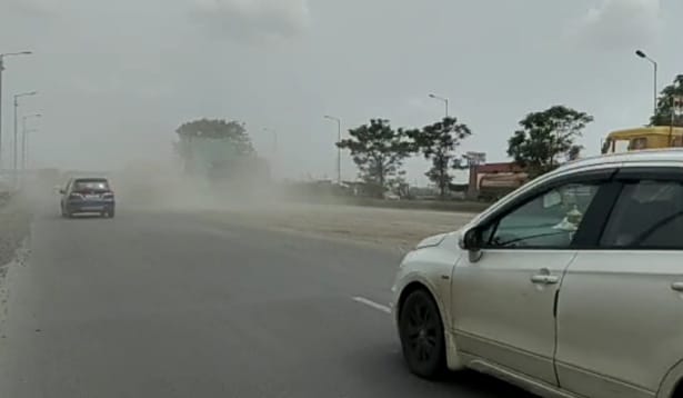ભરૂચ ને.હા. 48 પર ધૂળના કારણે ધુમ્મસ જેવો માહોલ સર્જાયો…