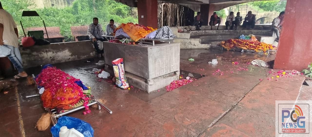 વરસાદી વાતાવરણ અને વરસતા વરસાદમાં જ્યાં ઠેર ઠેર પાણી ભરાયા છે ત્યારે ભરૂચ પંથકમાં વધુ એક સમસ્યા ઊભી થવા પામી છે. ભરૂચ જિલ્લાના એક માત્ર દાંડિયા બજાર ખાતે આવેલ શાંતિવન સ્મશાન ગૃહ ખાતે આજરોજ અંતિમ સંસ્કાર માટે આવેલ મૃતદેહોને વેઇટિંગમાં મૂકવામાં આવતા આશ્ચર્ય પામ્યું હતું. મૃતદેહો કોરોનાની બીજી લહેર દરમિયાન કલાકોના વેઇટિંગ જોવાં મળતા હતા.