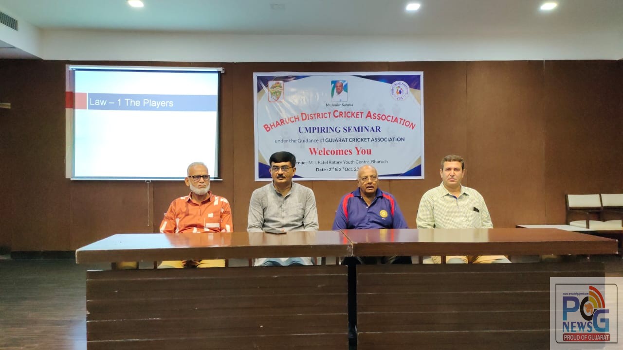 આજરોજ બીજી ઓક્ટોબરના રોજ ભરૂચ જિલ્લા ક્રિકેટ એસોશીએશન દ્વારા રોટરી ક્લબ ઓફ ભરૂચ ખાતે અમ્પાયર સેમિનાર યોજાયો હતો. આ સેમિનાર બે દિવસીય યોજવામાં આવી રહ્યો છે.