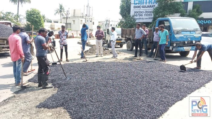 ગતરોજ મુખ્યમંત્રી ભુપેન્દ્ર પટેલના આદેશ અનુસાર સમગ્ર રાજયમાં રોડ અને રસ્તાઓની સમારકામની કામગીરી હાથ ધરવામાં આવી છે. ત્યારે ગતરોજ ભરૂચ નગરપાલિકા દ્વારા રોડ પર ડામર પાથરીને સમારકામની કામગીરી શરૂ કરવામાં આવી છે ત્યારે નગરપાલિકા વિપક્ષ સમસાદઅલી સૈયદ અને હેમેન્દ્ર કોઠીવાલા દ્વારા તંત્રની પોલ ખોલવામાં આવી છે, હજુ તો કામ ગતરોજથી જ શરૂ કરવામાં આવ્યું છે ત્યારે હાથથી જ રસ્તાની કામગીરી ખોદી શકે તેવી હલકી કક્ષાનું કામ હાથ ધર્યું હોવાના આક્ષેપો કરવામાં આવ્યા છે.