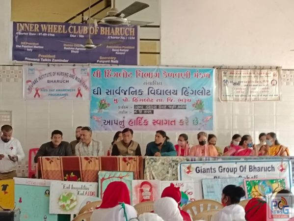 વેલ્ફેર નર્સિંગ કોલેજ ભરૂચ અને ઇનર વ્હિલ કલબ ભરૂચના સંયુક્ત ઉપક્રમે આજરોજ હિંગલોટ ગામમાં AIDS વિશે જાગૃતિ અભિયાન વિશ્વ એઇડ્સ દિવસે કરવામાં આવ્યું.