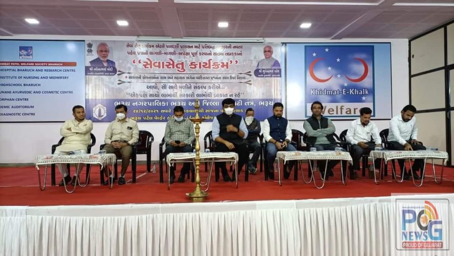 ભરૂચ વેલ્ફેર હોસ્પિટલ ખાતે સાતમાં તબક્કાનો સેવા સેતુ કાર્યક્રમ યોજાયો હતો. જેમાં વોર્ડ નંબર ૧,૨,૯ અને ૧૦ ના લાભાર્થીઓએ સરકારની વિવિધ યોજનાઓનો લાભ મેળવ્યો હતો. સેવાસેતુ કાર્યક્ર્મ હેઠળ ધારાસભ્ય અને નાયબ મુખ્ય દંડક દુષ્યંતભાઈ પટેલના સ્થાને કરવામાં આવી હતી.