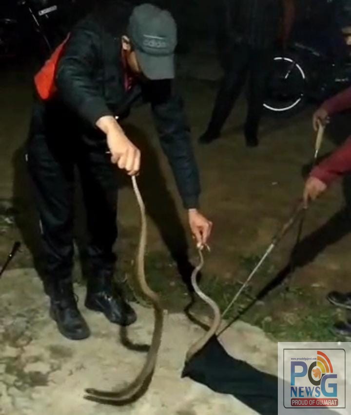 ભરૂચ તાલુકાના કહાન ગામમાં એક મકાનમાં કોબ્રા સાપનું જોડું દેખાતા ભારે ભયનો માહોલ સર્જાયો હતો. પ્રાપ્ત માહિતી અનુસાર મહમદ શાહ કોલોનીમાં રહેતા ઈમરાન ભાઈ સરપંચના ઘરે કોબ્રા નામના સાપનું જોડુ દેખાતા ઈમરાનભાઈએ ભરૂચ નેચર પ્રોટેક્શન ચેરીટેબલ ટ્રસ્ટના મુબારક પટેલ માંચ વાળાને જાણ કરતા મુબારક પટેલ અને એમના સહયોગી રોજમીના પટેલ અને મુનાફ પટેલ કહાન ગામમાં પહોંચી વન વિભાગ અધિકારીઓના માર્ગદર્શન હેઠળ સાડાચાર ફૂટ લાંબા બે કોબ્રા સાપ રેસ્ક્યુ કરી પર્યાવરણ વાતાવરણમા મુકત કર્યા હતા.