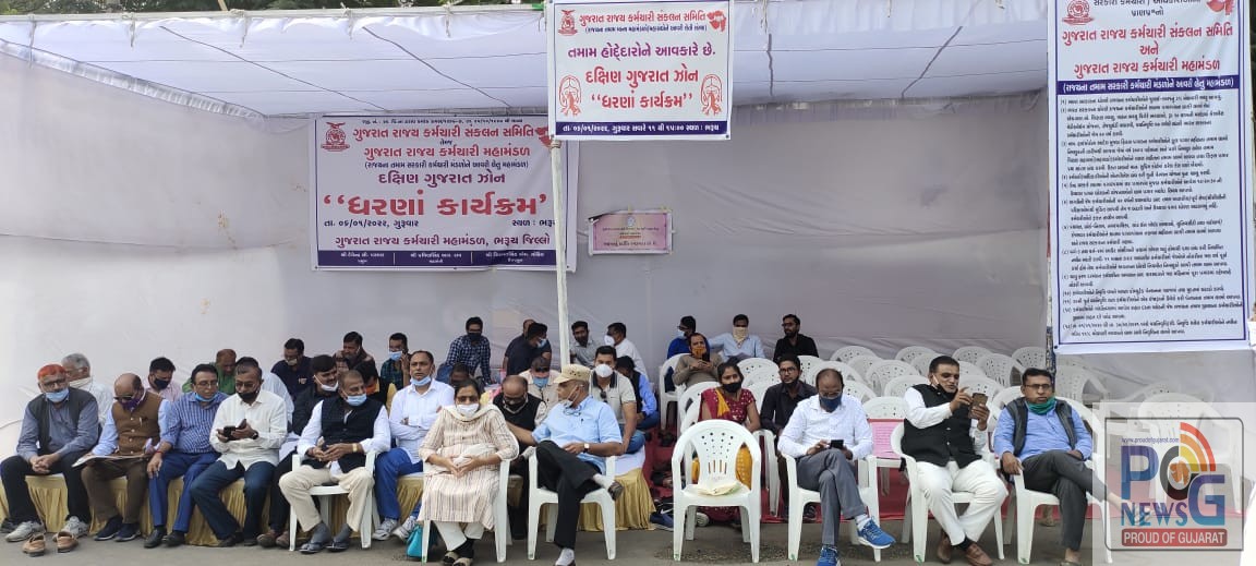 ગુજરાત રાજ્ય કર્મચારી સંકલન સમિતી અને ગુજરાત રાજ્ય કર્મચારી મહામંડળ દ્વારા લાંબા સમયથી વિવિધ માંગણીઓ ન સંતોષાતા ભરૂચ ખાતે ધરણા કાર્યક્રમ યોજવામાં આવ્યો હતો.
