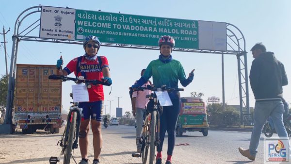 ભરૂચના સાયકલીસ્ટ શ્વેતા વ્યાસ તથા અંકલેશ્વરના નિલેશ ચૌહાણ અંકલેશ્વરથી પાવાગઢ સુધી સાયકલ યાત્રા યોજી હતી. જિલ્લાના બંને સાયકલિસ્ટનો મુખ્ય હેતુ પ્રધાનમંત્રી માનનીય નરેન્દ્રભાઈ મોદી સાથે સંકળાયેલો હોય. કોરોનાની ત્રીજી લહેરના આગમનની સાથે જ ફરી એકવાર લોકોમાં ચિંતાનું મોજું ફરી વળ્યું છે. ત્યારે પ્રધાનમંત્રીના ત્રણ વાક્યો લઈને બંને સાયકલિસ્ટ પાવાગઢની સાયકલ યાત્રા પર નીકળ્યા હતા.