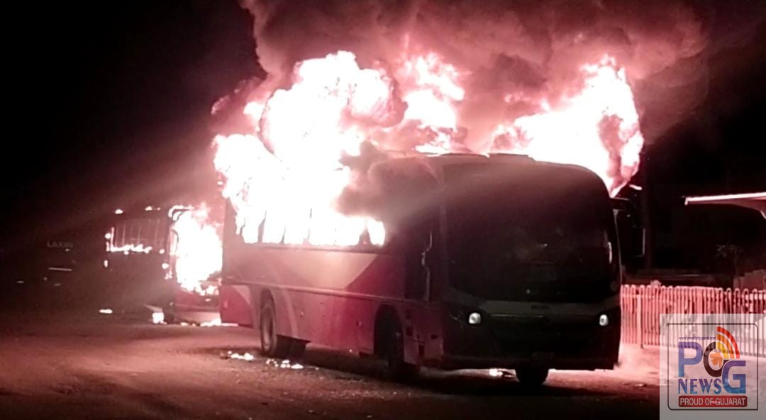 ભરૂચનાં શેરપુરામાં બે લકઝરી બસ સળગાવી, તોડફોડ અને લૂંટ મામલે AIMIM પ્રમુખ સહિત 8 ની ધરપકડ.