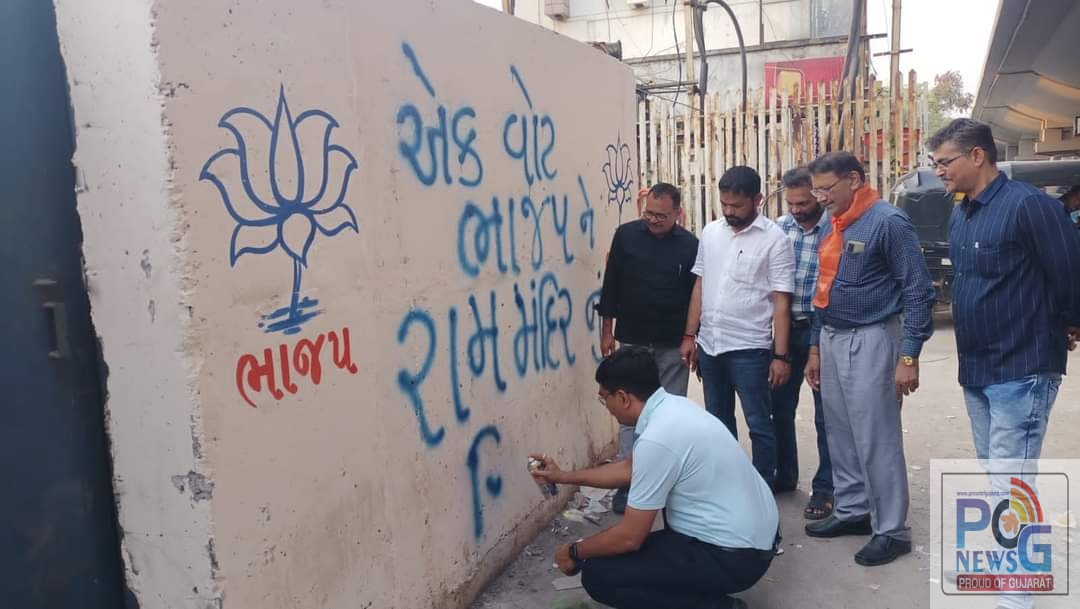 ભારતીય જનતા પાર્ટી ગુજરાત પ્રદેશ દ્વારા શરૂ કરવામાં આવેલ વોલ પેન્ટીંગ અભિયાન અંતર્ગત ભરૂચ જિલ્લા ભાજપ દ્વારા ભરૂચના શીતલ સર્કલ વિસ્તારમાં બ્રિજ નીચે આવેલ વોલ પર પેન્ટીંગ કરવામાં આવ્યું હતું, જેમાં ભાજપ શાસનમાં થયેલ કામોની ઝાંખી વોલ પર પેન્ટીંગ કરી દર્શાવવામાં આવી હતી, જેમાં એક વોટ ભાજપને, રામ મંદિરનું ભવ્ય નિર્માણ સહિત ભાજપના ચિન્હ કમળને પેઇન્ટિંગના માધ્યમથી લોકો વચ્ચે દર્શવવામાં આવી રહ્યું છે.