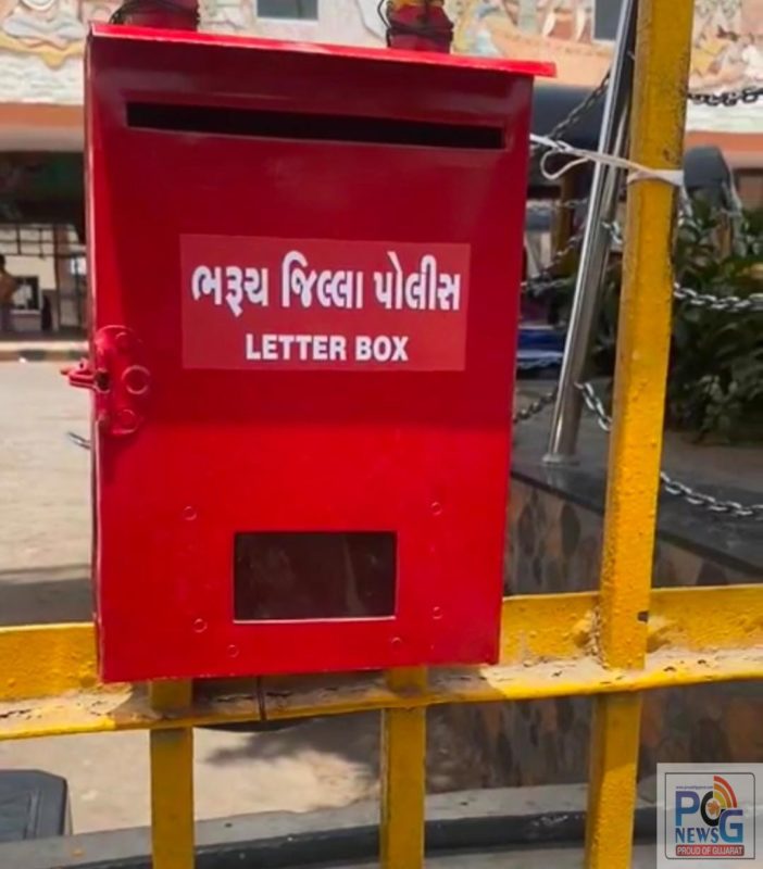 – ભરૂચ રેલવે સ્ટેશન, નર્મદા બસ સ્ટેશન, તુલસીધામ, નર્મદા પાર્ક અને માતરિયા તળાવ ખાતે લાલ લેટર બોક્સ મુકાયા.