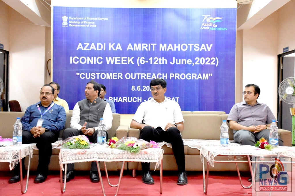 આઝાદીના અમૃર્ત મહોત્સવ અંતર્ગત કેન્દ્ર સરકારના નાણાં વિભાગ સમગ્ર ભારતમાં તા ૬ જૂનથી ૧૨ જૂન સુધીના એક અઠવાડિયાને “આયકોનિક વિક સમારોહ” તરીકે ઉજવી રહ્યું છે. તેના પગલે ભરૂચ જિલ્લામાં પણ લીડ બેન્ક સેલ બેંક ઓફ બરોડા, ભરૂચ દ્વારા આ પ્રકારની ઉજવણીનું આયોજન હાથ ધરવામાં આવ્યું હતું.
