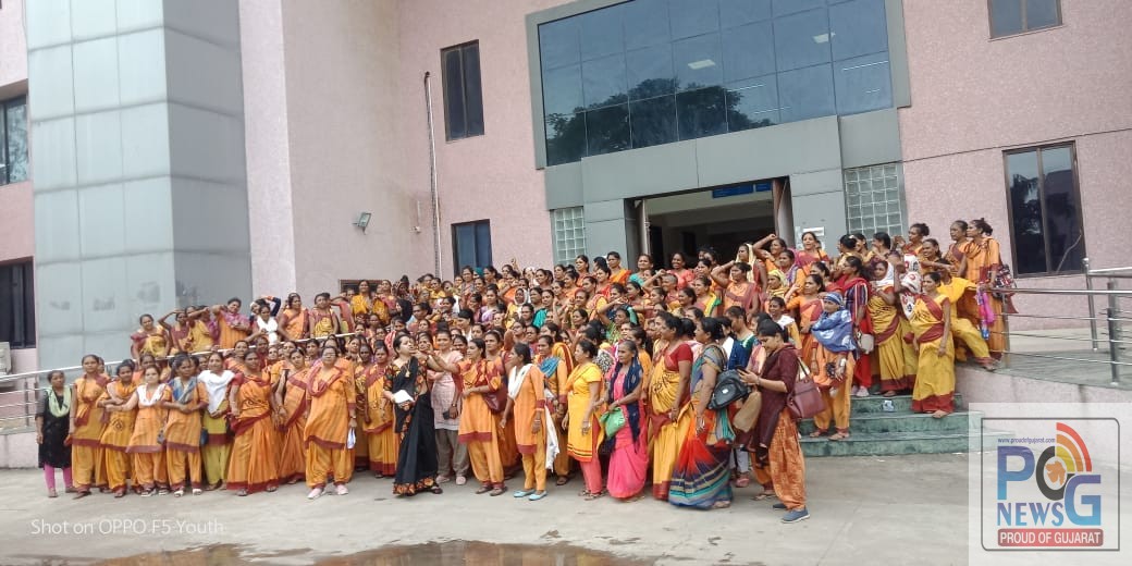 ગુજરાત આંગણવાડી કર્મચારી સંગઠનના અગ્રણી રાગીણીસિંહ પરમારની આગેવાની કલેકટર કચેરી ખાતે મોટી સંખ્યામાં ભેગી થયેલ આંગણવાડીની બહેનોએ વિવિધ પડતર પ્રશ્નો સાથે જણાવ્યું હતું કે ગુજરાતના પાંચ જિલ્લાના ૧૦ ઘટકોમાં હાલ ચાલુ કરવાના આવેલ સગર્ભા/ધાત્રી માતાઓને રોજ એક વખત સંપૂર્ણ ભોજન મળી રહે તે માટે પાયલોટ પ્રોજેકટ તરીકે પોષણ સુધા યોજના જે અમલ માં મુકવામાં આવી છે તે યોજનામાં હાલની મોંઘવારીના પ્રમાણમાં ૧૯ રૂ.ની થાળી એટલે કે ૨૭ રૂ.માંથી બળતણ, દળામણ, મસાલા,વર્કર/હેલ્પરનું ઇન્સટિવ બાદ કરતાં જે માતાઓને ખવડાવવા માટે જણાવેલ છે જેની માત્રા જોતા લાગે છે કે અમો સંપૂર્ણ ભોજન (દાળ,ભાત, શાક,રોટલી) મળી શકે તેમ નથી. જેવી અનેક બાબતોના પ્રશ્નોને લઈ જિલ્લા કલેક્ટરને એક આવેદનપત્ર પાઠવી તેઓની વેદનાઓ વ્યક્ત કરી તેઓની માંગણીઓ સંતોષાય તેવી માંગ કરી હતી.