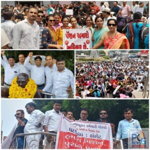 જૂની પેન્શન યોજના ફરી શરૂ કરવા માટે રાજ્યના સંયુક્ત કર્મચારી મંડળો તેમજ ભરૂચ જિલ્લા પ્રાથમિક શિક્ષક સંઘ મેદાનમાં ઉતર્યા છે. પરંતુ સરકાર દ્વારા હજુ સુધી તેમના મુદ્દે કોઈ હકારાત્મક નિર્ણય લેવામાં આવ્યો નથી. આ ઉપરાંત અન્ય પ્રશ્નો મુદ્દે પણ અનેક રજૂઆતો કરી હોવા છતાં કોઈ નિરાકરણ ન આવતા સામે ચૂંટણીએ કર્મચારીઓ દ્વારા આંદોલનનો હથિયાર ઉપાડીને વિરોધ પ્રદર્શન કરી જૂની પેન્શન યોજના પુનઃ લાગુ કરવાની માંગ સાથે સયુંકત કર્મચારી મોરચો ગુજરાત રાજ્ય અને ગુજરાત રાજ્ય કર્મચારી મહામંડળના આદેશ બાદ ભરૂચ સંયુક્ત કર્મચારી મંડળ તેમજ ભરૂચ જિલ્લા પ્રાથમિક શિક્ષક સંઘ દ્વારા આજરોજ રેલ્વે સ્ટેશનથી ભરૂચ કલેકટર કચેરી સુધી રેલી કાઢી, સૂત્રોચાર કરી જૂની પેન્શન યોજના પુનઃ લાગુ કરવાની માંગ સાથે ભરૂચ કલેકટરને આવેદન પત્ર પાઠવામાં આવ્યું હતું.