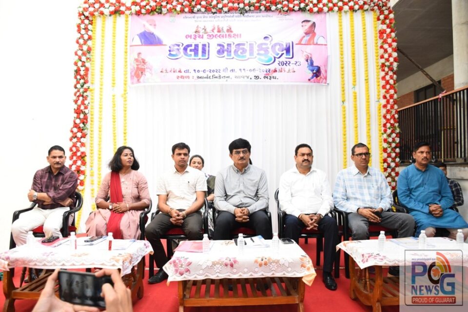 રમત ગમત, યુવા અને સાંસ્કૃતિક પ્રવૃત્તિઓ વિભાગ હસ્તકની કમિશનર, યુવક સેવા સાંસ્કૃતિક પ્રવૃત્તિઓની કચેરી – ગાંધીનગર દ્વારા આયોજીત અને જિલ્લા યુવા વિકાસ અધિકારી અને જિલ્લા રમત ગમત અધિકારીની કચેરી, ભરૂચ દ્વારા સંચાલિત તથા આનંદ નિકેતન સ્કૂલના સહયોગથી ભરૂચ જિલ્લા કક્ષા કલા મહાકુંભ – ૨૦૨૨-૨૩ યોજાયો હતો. કાર્યક્રમની શરુઆત દીપ પ્રાગટ્ય થકી કરવામાં આવી હતી.