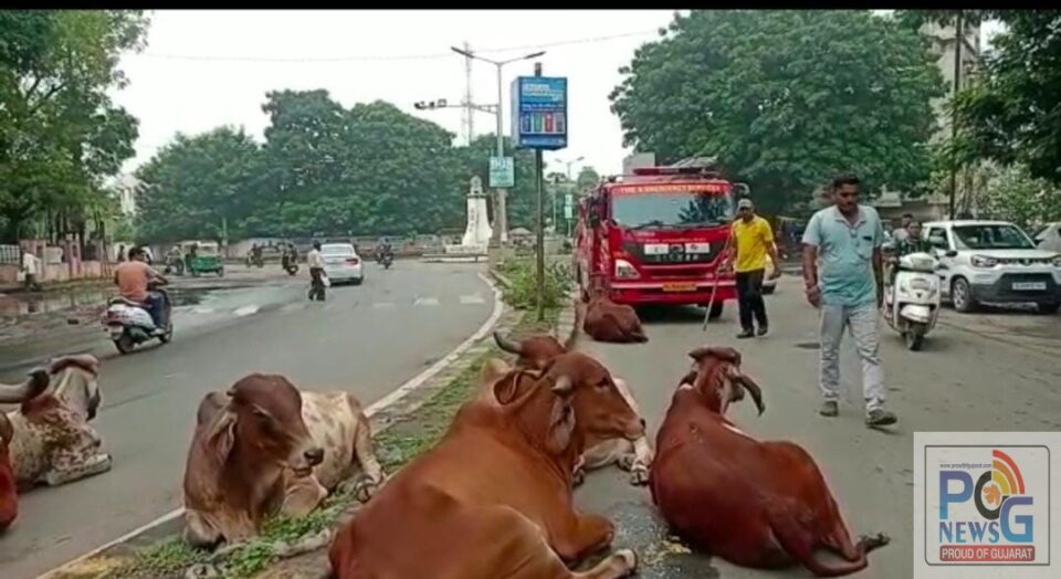 ભરૂચના મુખ્ય માર્ગો ઉપર અડિંગો જમાવતા પશુઓને ખસેડવાની કામગીરી ફાયરમેનોને સોંપાઈ છે, છેલ્લા ઘણા સમયથી જાહેર માર્ગો ઉપર રખડતા પશુઓ વાહન ચાલકો અને રાહદારીઓ માટે માથાના દુઃખાવા સમાન બન્યા હતા, કેટલાક સ્થળે તો રખડતા પશુઓના કારણે અકસ્માત સર્જાવવા જેવી ઘટનાઓ પણ સામે આવી હતી જેમાં તાજેતરમાં જ અંકલેશ્વર ખાતે રખડતા પશુનું શીંગડું વાગતા એક વેપારીએ સારવાર લેવાની નોબત આવી પહોંચી હતી.