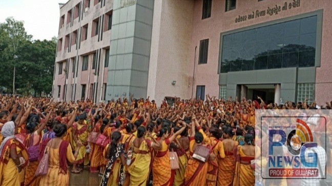 ગુજરાત આંગણવાડી વર્કરના રાજ્યવ્યાપી વિરોધ આંદોલન વચ્ચે ભરૂચ જિલ્લાની બહેનો પણ આજે 8 જેટલા મુદ્દાને લઈ વિફરી હતી. કલેકટર કચેરી ખાતે સેંકડોની સંખ્યામાં આંગણવાડી બહેનોએ ઉમટી મોદી તારી છેલ્લી દિવાળીની નારેબાજી ચલાવી હતી. ગુજરાત વિધાનસભાની ચૂંટણી જેમ જેમ નજીક આવી રહી છે તેમ તેમ વિરોધ, વંટોળ, માંગણીઓ, આવેદનો અને આંદોલનો પણ વધી રહ્યા છે. ખેડૂતો, સરકારી કર્મચારીઓ સહિતના માંગણીઓ મુદ્દે હવે મેદાનમાં ઉતરી રહ્યા છે.