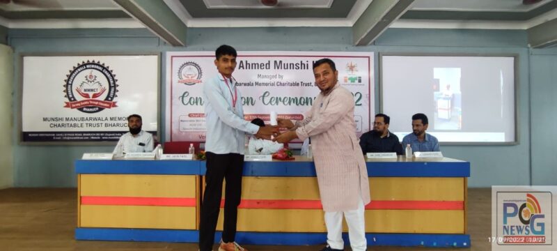 મુન્શી મનુબરવાલા મેમો.ચે.ટ્રસ્ટ સંચાલિત મુન્શી આઇ.ટી.આઇ. ખાતે કોનવોકેશન Ceremony – 2022 નું આયોજન તા. ૧૭/૦૯/૨૦૨૨ ના વિશ્વકર્મા દિને આ પ્રોગ્રામ ઉજવવાનું આયોજન થયું હતું. પ્રોગ્રામની શરુઆત તિલાવતે કલામે પાક્થી કરવામાં આવેલ. શાબ્દિક સ્વાગત પ્રવચન મુન્શી મનુબરવાલા મેમો.ચે.ટ્રસ્ટના ટ્રસ્ટી યુનુસભાઇ પટેલ સાહેબે કર્યું હતું અને પ્રોગ્રામની રુપરેખા અને પરિચય સંસ્થાના આચાર્ય આરીફ પટેલ દ્વારા કરવામાં આવેલ. મુખ્ય મહેમાન હેમરાજ પટેલ (આસીસ્ટ્ન્ટ જનરલ મેનેજર એચ.સી.એસ.આર.) બીરલા ગ્રાસીમ ઇન્ડસ્ટ્રીજ લીમીટેડનું પુષ્પગુચ્છ અને મોમેન્ટ દ્વારા સન્માન ટ્રસ્ટનાં ટ્રસ્ટી યુનુસભાઇ પટેલ દ્વારા કરવામાં આવેલ તથા અતિથિ વિશેષ તરીકે પધારેલ મહેમાન જતીનભાઇ પટેલ (ચીફ મેનેજર એચ.આર./આઇ.આર) ગુજરાત કેમીક્લ પોર્ટ લીમીટેડનું પુષ્પગુચ્છ અને મોમેન્ટ દ્વારા સન્માન કારોબારી સમિતિના સભ્ય સલીમભાઇ અમદાવાદી દ્વારા કરવામાં આવેલ, ત્યાર બાદ મંચ ઉપર બિરાજ્માન મહાનુભવો દરેક વ્યવસાયમાં પ્રથમ અને દ્વીતીય ક્ર્મે ઉત્તીણ થનાર તાલીમાર્થીઓને ચંદ્ર્ક અને પ્રમાણપત્ર એનાયત કરી સન્માનીત કરવામાં આવ્યા.