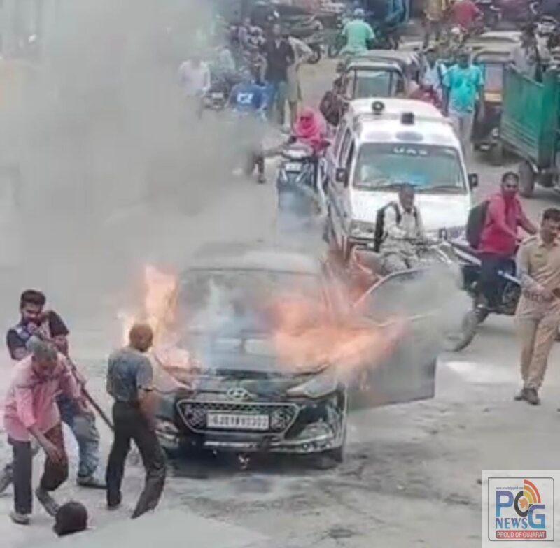 ભરૂચ શહેરના હાર્દસમા પાંચબત્તી વિસ્તારમાં આજે એક કાર અચાનક સળગી ઉઠતા ભારે અફરાતફરીનો માહોલ સર્જાયો હતો. સોનેરી મહેલથી પાંચબતી તરફ આવતી કારમાં અચાનક ધુમાડા ફાટી નીકળતા કારના ચાલક સમય સુચકતા એ બહાર નીકળી ગયો હતો, જે બાદ જોત જોતામાં કારમાં આગની જ્વાળાઓ ભભૂકી ઉઠતા ભરચક એવા પાંચબત્તી વિસ્તારમાં એક સમયે દોડધામ મચી હતી.