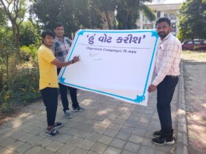 વિધાનસભા સામાન્ય ચૂંટણી જાહેર થયા બાદ પ્રારંભથી જ ભરૂચ જિલ્લા ચૂંટણી તંત્ર વધુમાં વધુ મતદાન થાય એવા પ્રયાસો કરી રહ્યું છે. જેના ભાગરૂપે મતદારો આ ચૂંટણીમાં ઉત્સાહભેર મતદાન કરવા પ્રેરાય એ માટે ‘સિગ્નેચર અભિયાન’ શરૂ કરાયુ છે. મૌઝા ગામ નાગરિકો મતદાન જાગૃત્તિ સહી ઝુંબેશમાં ભાગ લઈને ‘ હું ભારતના બંધારણને સાક્ષી માની શપથ લઉં છું કે, આગામી વિધાનસભા ચૂંટણીમાં હું કોઈ પણ ધર્મ, જાતિ, ભાષાના ભેદભાવથી દૂર રહીને અને કોઈ પણ રીતે પ્રલોભિત થયા વિના અચૂક મતદાન કરીને લોકશાહીના આ અવસરને ઊજવીશ’ એવી પ્રતિજ્ઞા લઈ રહ્યા છે.